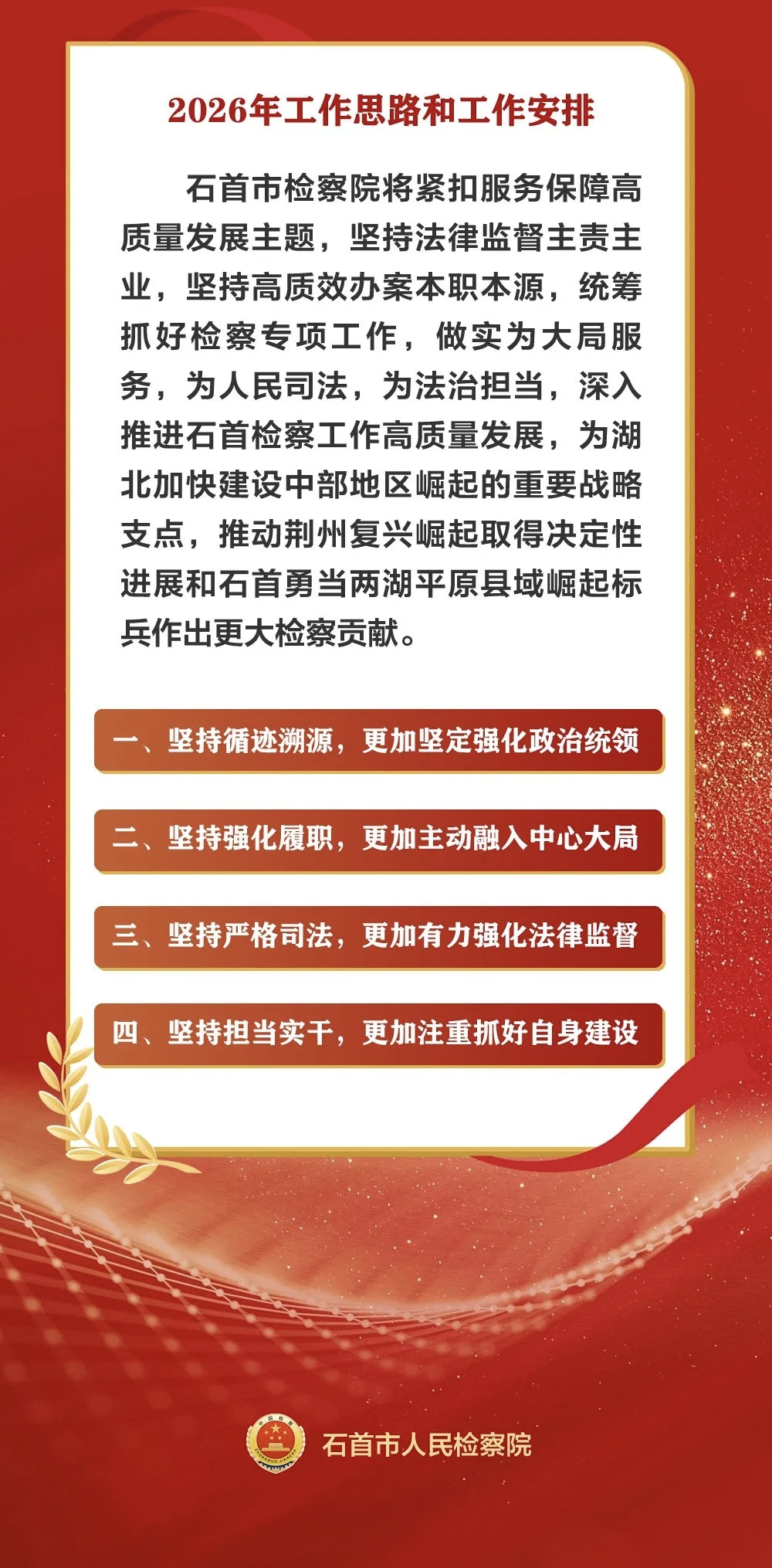 2026年1月8日上午,石首市人民检察院党组书记、检察长毛传杰向石首市第十届人民代表大会第六次会议报告检察工作。