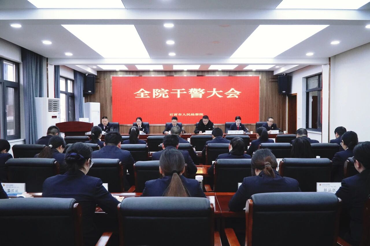 2月26日下午,石首市检察院组织召开全院干警大会暨警示反思会。会议由院党组成员、副检察长张唯主持,全体检察干警参加会议,市纪委监委派出第三纪检监察组组长罗剑峰出席会议。
